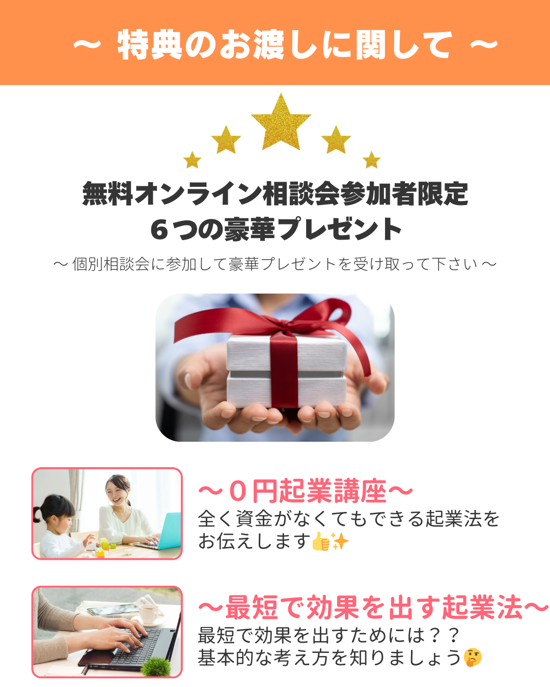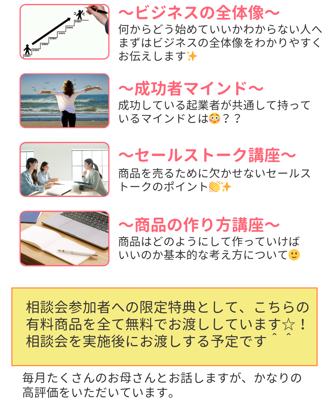 → 今回の相談会はパソコンじゃなくても大丈夫です。実際にビジネスを始める際にはパソコンの基本操作もすべてサポートしますので安心してください。